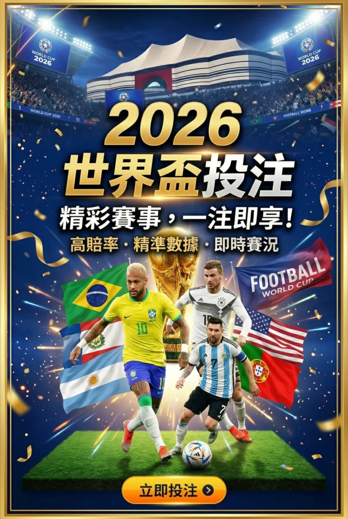 提供完整世界盃賽事投注選項,包含勝負、讓分、大小等多種玩法,讓玩家依照不同策略自由選擇,提升投注彈性與多樣性。